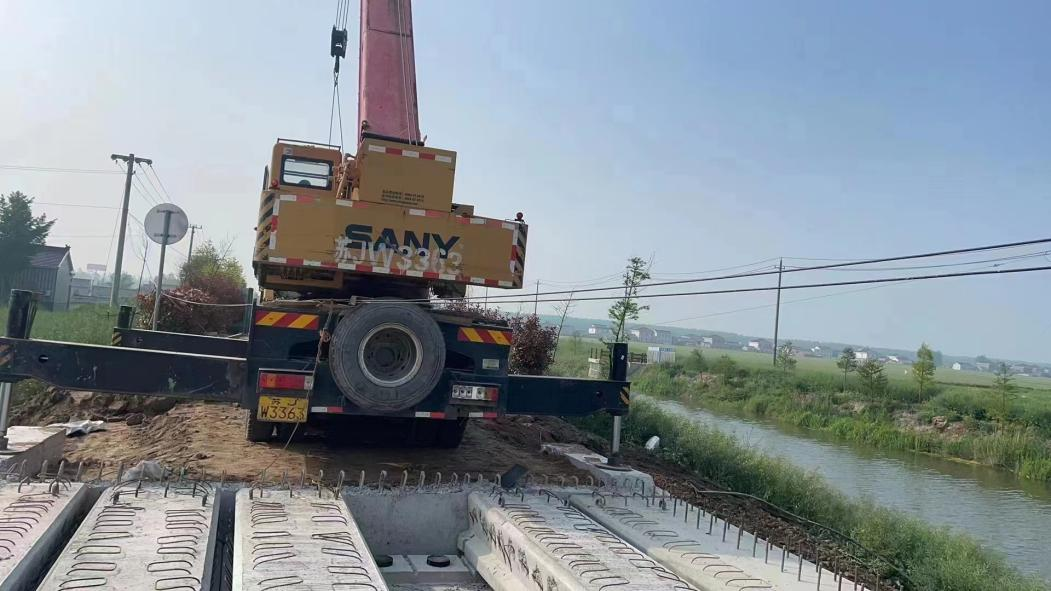 4月27日,步鳳鎮(zhèn)危橋改造工程九總河橋、三總河橋完成梁板吊裝。