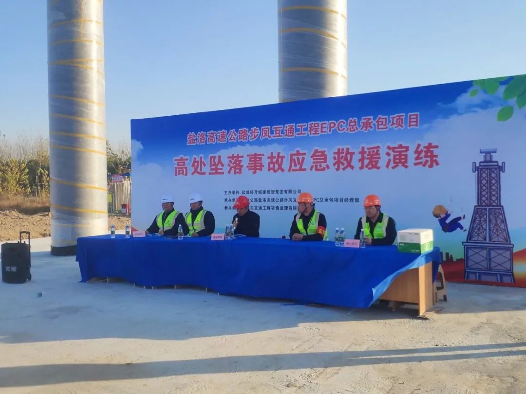 為持續(xù)樹牢安全紅線意識,普及安全生產(chǎn)知識,提升施工現(xiàn)場管理和一線作業(yè)人員安全素養(yǎng)和防護(hù)意識,有效保障施工領(lǐng)域安全生產(chǎn)形勢平穩(wěn),11月28日下午,鹽城經(jīng)開城投集團(tuán)在鹽洛高速步鳳互通項(xiàng)目現(xiàn)場開展高處墜落事故應(yīng)急救援演練活動(dòng)。集團(tuán)工程條線全體人員及各在建項(xiàng)目項(xiàng)目經(jīng)理、總監(jiān)參加活動(dòng)。