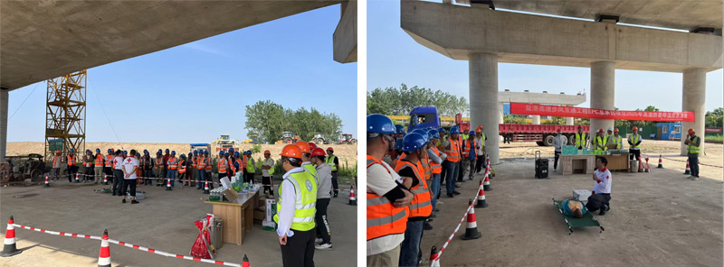 為切實(shí)保障高溫天氣下施工人員的生命健康安全,提升項(xiàng)目應(yīng)對(duì)突發(fā)高溫中暑事件能力,鹽洛高速步鳳互通項(xiàng)目按照2025年“安全生產(chǎn)月”方案要求,開展了高溫防暑應(yīng)急演練活動(dòng)。現(xiàn)場(chǎng)模擬了一名路基工人因高溫中暑暈倒的場(chǎng)景,現(xiàn)場(chǎng)負(fù)責(zé)人收到信息后迅速響應(yīng),即刻啟動(dòng)高溫中暑現(xiàn)場(chǎng)處置預(yù)案。應(yīng)急救援小組接到通知后,第一時(shí)間攜帶急救設(shè)備和防暑藥品趕赴現(xiàn)場(chǎng),將中暑工人轉(zhuǎn)移至陰涼通風(fēng)處,松解衣物散熱,并通過濕毛巾冷敷、喂服藿香正氣水等措施緊急救治。同時(shí),現(xiàn)場(chǎng)疏散小組迅速組織其他施工人員有序撤離至安全區(qū)域,避免因慌亂造成二次事故。在各小組緊密配合下,演練取得圓滿成功。演練后還邀請(qǐng)鹽城市紅十字會(huì)相關(guān)人員對(duì)項(xiàng)目參建人員進(jìn)行了高溫中暑處置培訓(xùn),切實(shí)提高項(xiàng)目人員的處置能力和處置規(guī)范性。